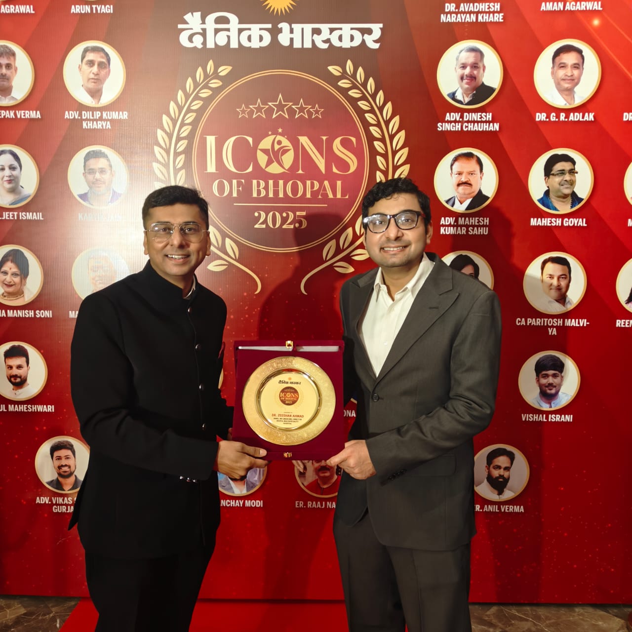 A moment of immense pride and joy .heartiest congratulations to dr zeeshan ahmed on being honoured with Dainik Bhaskar – Prestigious Icons of Bhopal 2025 award conferred by honourable shri prahlad singh patel ji at courtyard Marriott- a truly well deserved recognition of excellence and impact .heartfelt thanks to the Dainik Bhaskar  group for recognizing excellence and celebrating impactful contributions.